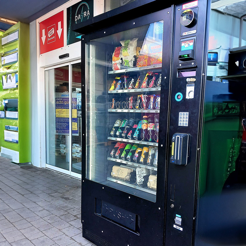 Aber die meisten Produkte sind an unserem Automaten wie gewohnt rund um die Uhr für Sie verfügbar.